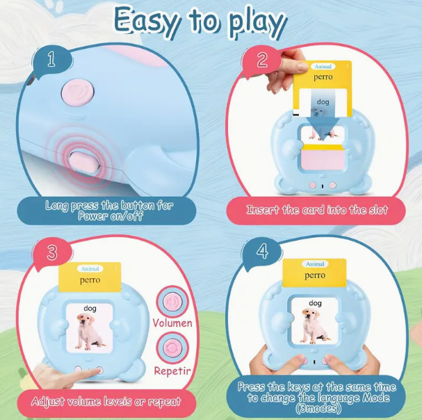 Estudios demuestran que los niños aprenden idiomas más rápido cuando lo hacen mediante la escucha repetida y el juego 🤓. Este juguete estimula la memoria, la pronunciación y la asociación visual-sonora, ayudándoles a familiarizarse con el inglés desde muy pequeños.